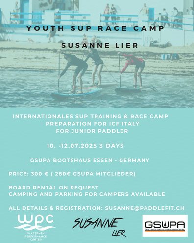 Vom 10.07. bis 12.07. findet auch dieses Jahr wieder ein SUP Kids Camp mit Susanne Lier in Essen statt. Wie letztes Jahr wieder 3 Tage und auf dem Gelände des GSUPA Hauptquartiers. Für alle Kinder, die Einzelmitglieder der GSUPA sind, oder einem Mitgliedsverein der GSUPA angehören, gibt es auch diesmal wieder einen Special Preis für die Teilnahme.