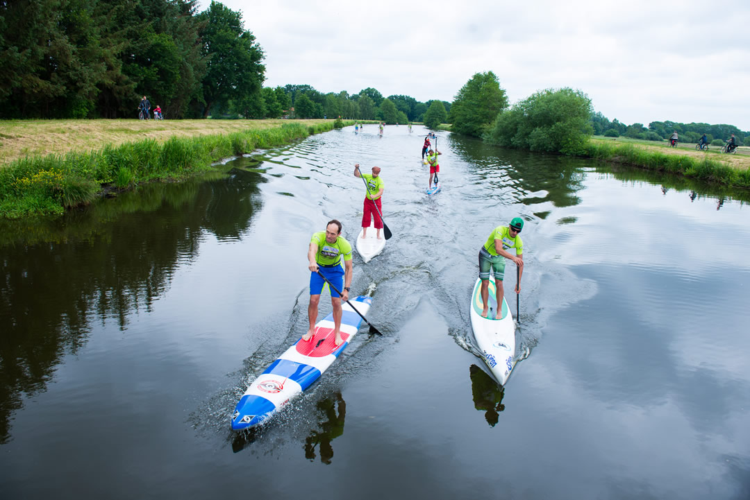 Mit den Verkehrsbetrieben VWG hat das Oldenburger SUP Rennen zur Hafenlust einen starken neuen Partner gefunden. So konnten am Wochenende zur Niedersachsenmeisterschaft in Norddeutschland spannende Rennen durchgeführt werden. Während es am Samstag im Team Rennen eher um den Spaß an der Sache ging, so wurden im neuen SUPer SPRINT und in der Niedersachsenmeisterschaft U14 um Preise und Plätze gekämpft. Im Team Rennen belegten die Paddler Volker Wohnlich, Stefan Grosch und Tobias Kuhl mit ihrem Blondie Team schon zum zweiten Mal in Folge den ersten Platz. Bei den Kinderrennen konnte sich Carl Bischoff zum dritten Mal in Folge mit einem deutlichen Vorsprung den Titel des Niedersachsenmeisters U14 ergattern.